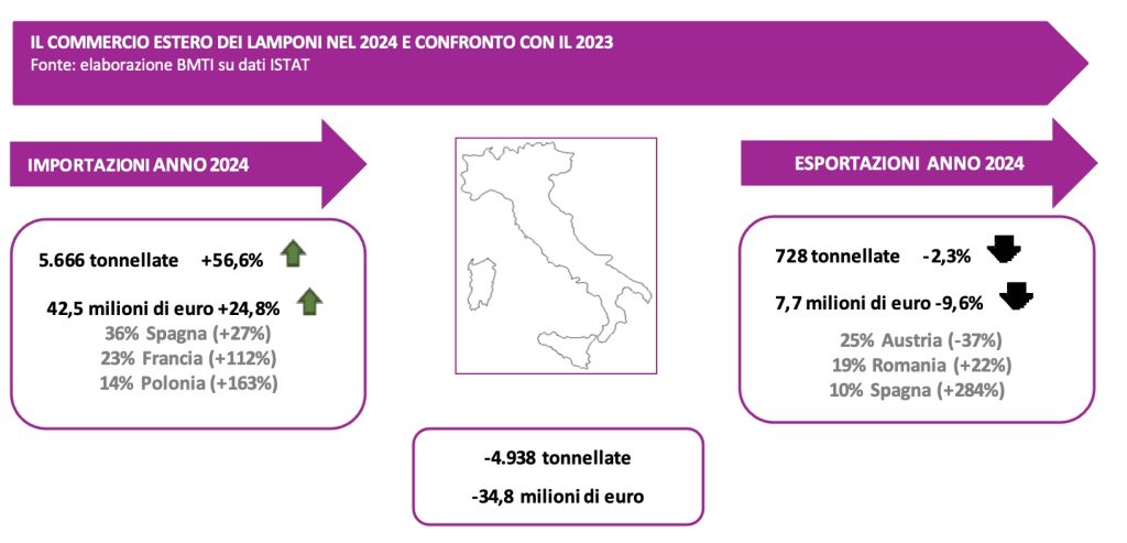 Despite increased raspberry production volumes in 2024 compared to 2023, Italy imported over 50% more product in 2024, a clear sign of the significant scope for domestic consumption growth.