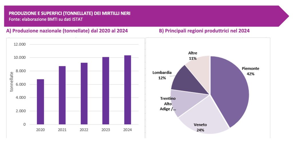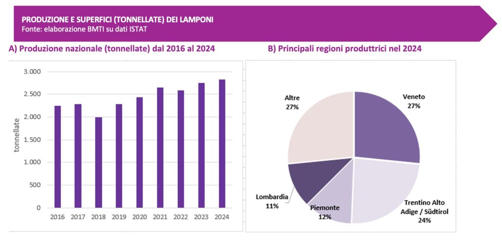 La produzione di lamponi e mirtilli in Italia fino al 2024