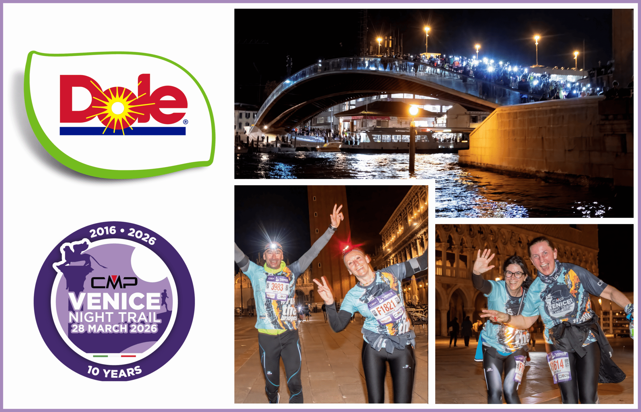 Dole Italia rinnova la propria presenza come official sponsor alla decima edizione della Cmp Venice Night Trail, in programma sabato 28 marzo 2026, consolidando una partnership strategica con uno degli appuntamenti più distintivi del calendario running nazionale.