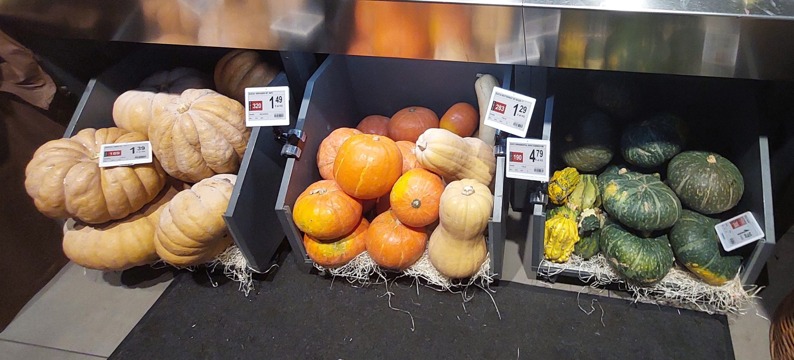 In alcuni punti di vendita della rete, l’esposizione è articolata su pallet e sacchi di juta con almeno 5 varietà di zucca tra cui la zucca Delica e quella biologica. I banchi sono arricchiti da foglie dal tipico colore autunnale, e sono posti in posizione centrale perché risultino immediatamente visibili alla clientela.