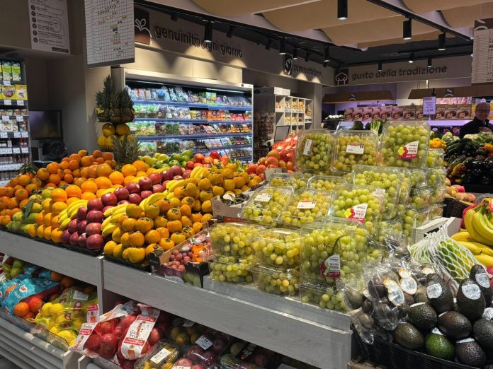 L’area per frutta e verdura è posta in primo piano e ad inizio del layout. Il reparto dispone di circa 300 referenze con una valorizzazione ad ingresso delle primizie e dei prodotti stagionali con referenze sia sfuse che confezionate. “Sulla base della clientela ci sono differenze assortimentali da punto di vendita a punto di vendita -spiega Antonio Grasso, direttore marketing, innovazione digitale e sviluppo rete di Superò-. Solitamente il display espositivo ha una rotazione di una volta a settimana sulla base della stagionalità. In concreto abbiamo una maggiore disponibilità di alcuni prodotti a cui vengono riservati in molti casi dei corner dedicati. Una settimana fa, per esempio, abbiamo dato ampio spazio ai mandarini mentre più recentemente abbiamo valorizzato le arance.”