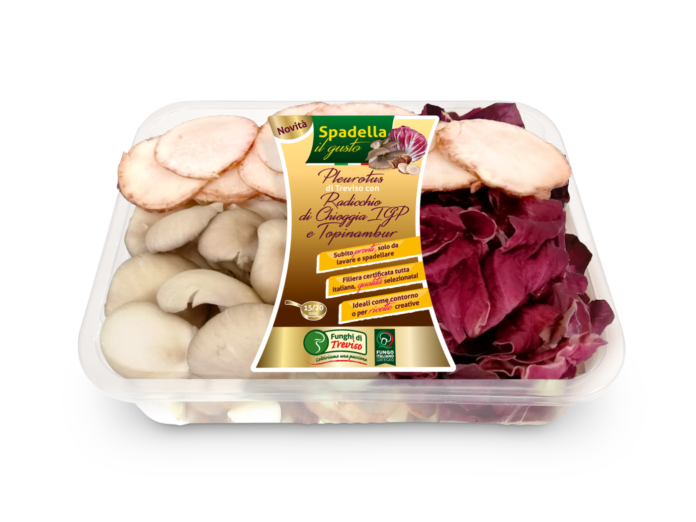 Il Consorzio Funghi di Treviso ha ampliato la linea Spadella il Gusto con la nuova referenza composta da Pleurotus di Treviso con radicchio di Chioggia Igp e Topinambur, disponibile nella grande distribuzione in limited edition ad aprile in base alla disponibilità stagionale del radicchio.