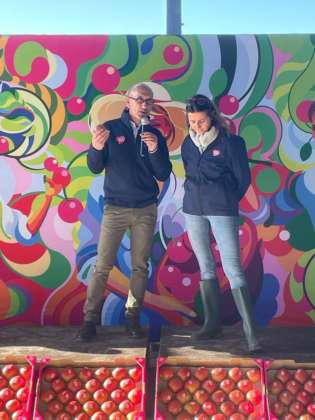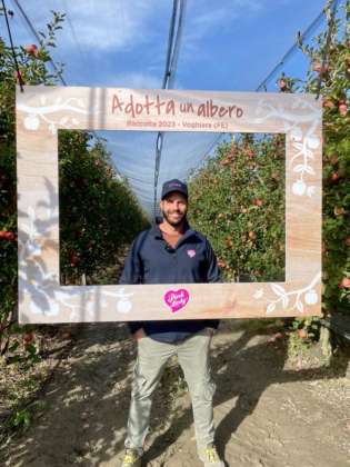 Per l’Italia i frutteti coinvolti nell’operazione sono due: quello di Alexander Holler, produttore del Consorzio Vog, in Alto Adige e il frutteto della società Agricola Mazzoni in Emilia-Romagna, due dei principali bacini di produzione della mela Pink Lady nel nostro paese. Noi siamo stati nei campi di Voghiera, del Gruppo Mazzoni e ne abbiamo parlato con Matteo Mazzoni, direttore commerciale del Gruppo e con Thierry Mellenotte, direttore generale di Pink Lady.
