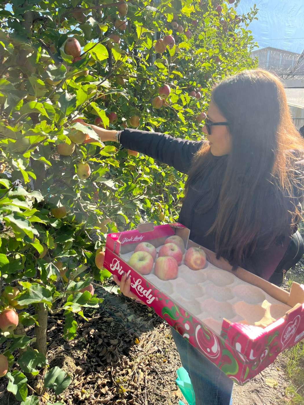 Per l’Italia i frutteti coinvolti nell’operazione sono due: quello di Alexander Holler, produttore del Consorzio Vog, in Alto Adige e il frutteto della società Agricola Mazzoni in Emilia-Romagna, due dei principali bacini di produzione della mela Pink Lady nel nostro paese. Noi siamo stati nei campi di Voghiera, del Gruppo Mazzoni e ne abbiamo parlato con Matteo Mazzoni, direttore commerciale del Gruppo e con Thierry Mellenotte, direttore generale di Pink Lady.