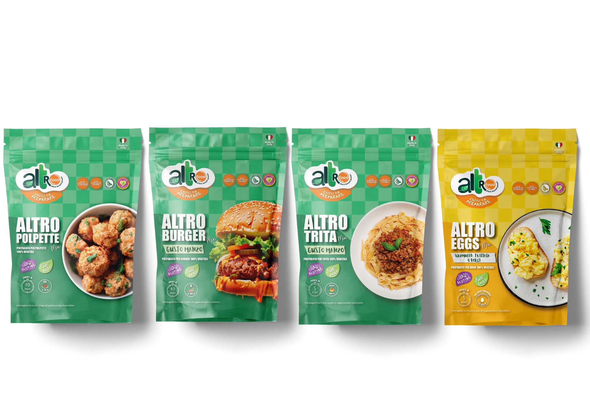 AltroFood è un brand che produce preparati 100% vegetali alternativi a carne e uova. Le referenze disponibili nella grande distribuzione organizzata sono AltroBurger mix gusto manzo, AltroTrita mix, AltroEggs mix, AltroPolpette mix.